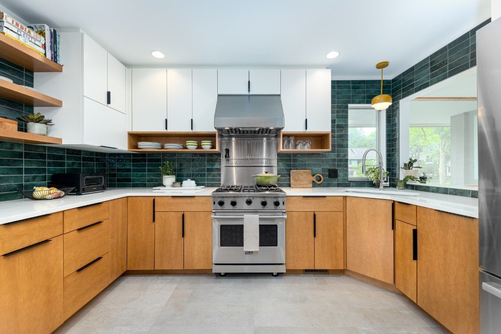 - Want a showpiece / statement kitchen → bold geometric tiles, mixed-material backsplash, or full-wall slab.